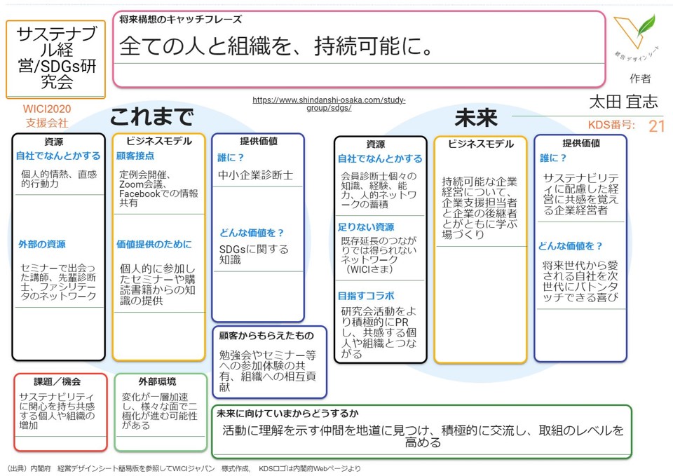 報告会の最後に改めて太田代表から、経営デザインシートを用いた当研究会のビジョンの共有がありました。