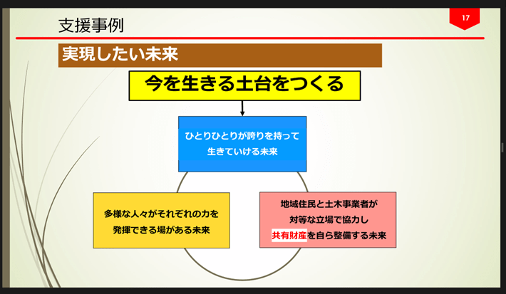 また、住民が置き去りにされたインフラ整備も多く、市民は自分たちの為の事業であるのにどこか他人事で、本当に地域にとって必要なものは何か。(地域の課題)