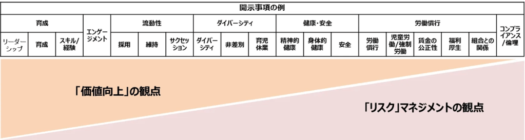 中小企業においては、取引先から求められるよりも先んじてサステナビリティ開示を行うことで、特に人的資本開示においては、価値向上の観点、リスクマネジメントの観点の両面でメリットがあるものと考えられます。