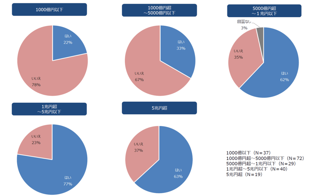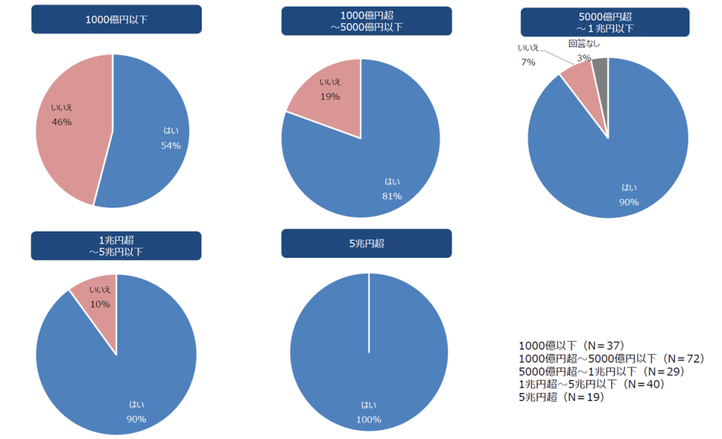 経済産業省「サステナビリティ関連データの収集・活用等に関する実態調査のためのアンケート調査結果」(2023年7月)によれば、回答企業200社(うち188社がプライム上場、10社がスタンダード上場、2社が非上場)のうち、連結売上高1,000億円超の企業は、8割以上が事業戦略に必要なサステナビリティデータを特定できていると回答しています。