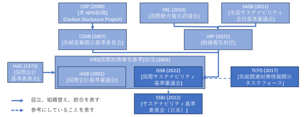 様々な開示基準が乱立するアルファベット・スープ状態を終わらせるべく、国際的な会計基準を制定するIFRS財団が、2022年にISSB(国際サステナビリティ基準審議会)を設立。関連団体を吸収しつつ、国際的なサステナビリティ報告のグローバルベースライン(最低限守るべき基準)を設定しました。2023年6月にはS1(全般的開示基準)、S2(気候変動関連開示基準)が最終化され、日本においてもISSBを参考に国内基準が開発されています。