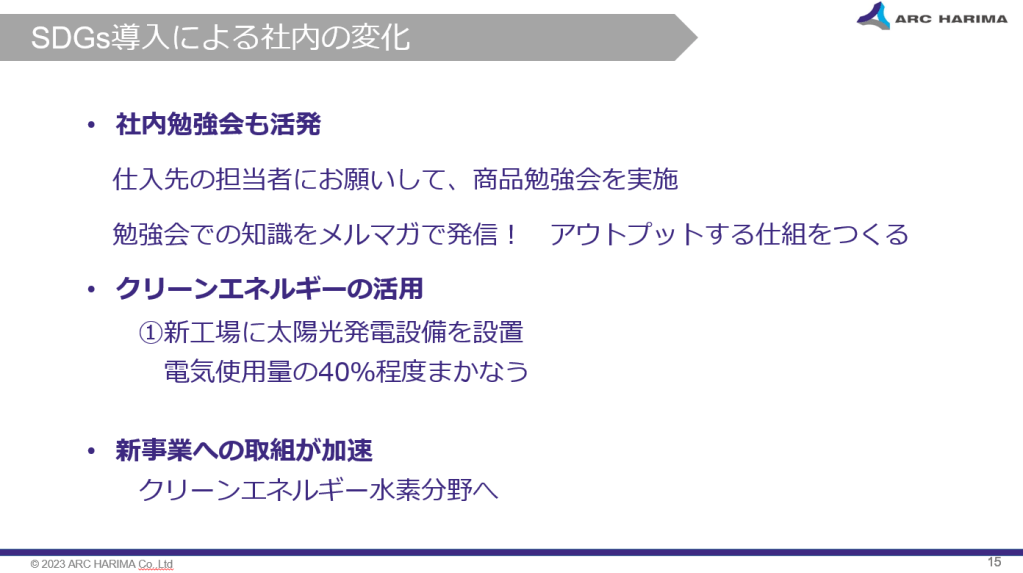 AH社では、SDGsの考え方が導入され、以下の変化が社内でも生まれてきました。