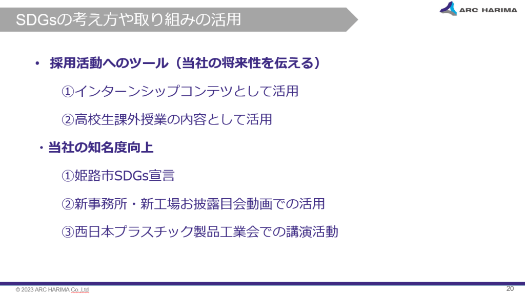 SDGsの導入支援を終え約2年が経過し、採用活動のツールとしての活用や地元での知名度向上に役立っている、という報告がありました。