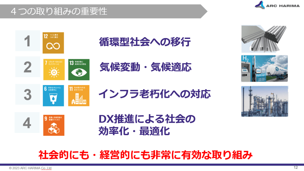 SDGsと自社の課題を紐づけていく中で、以下の4つのテーマが重要な取り組みとして、解像度が高まっていきます。