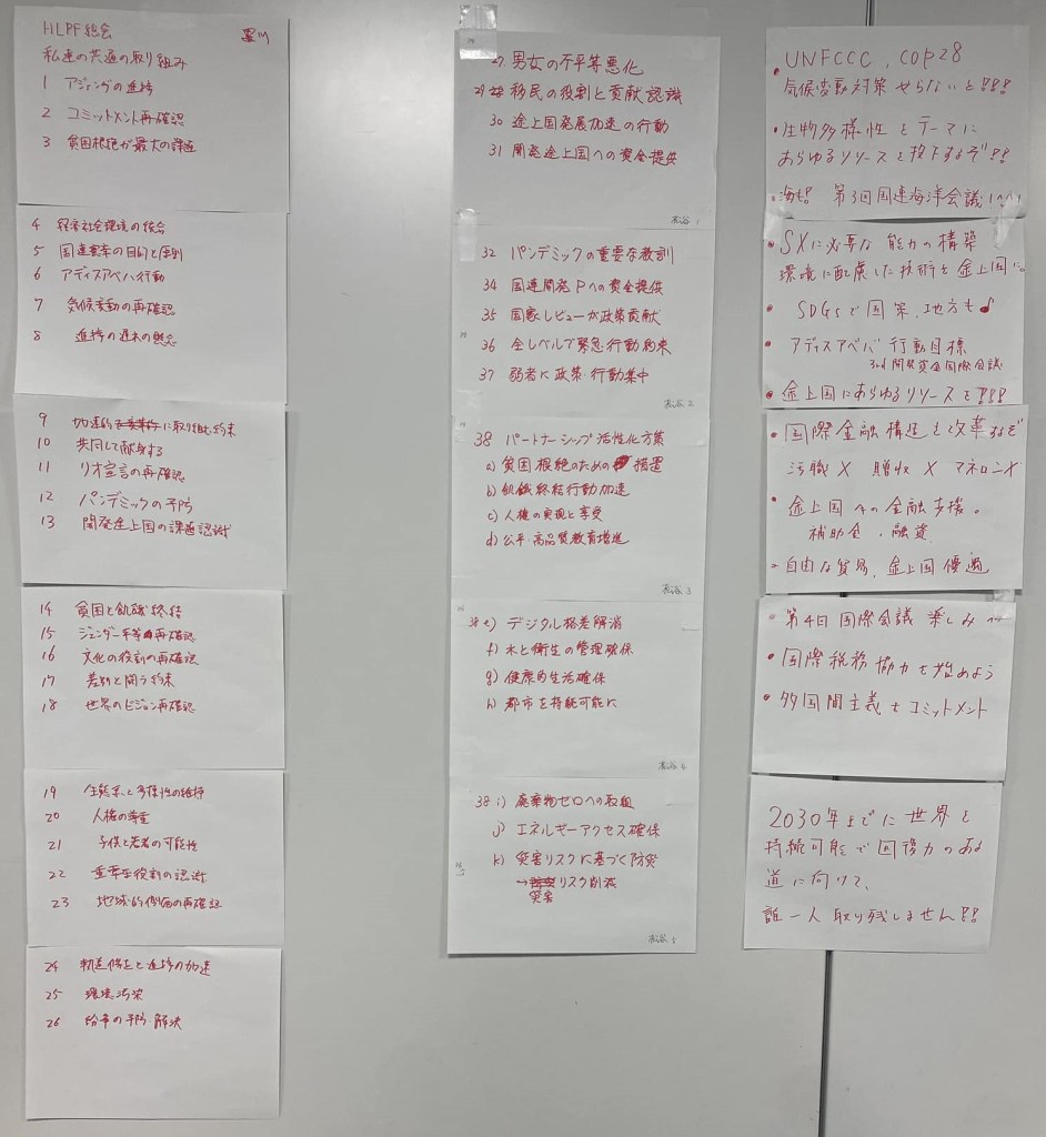 3つの文書は、政治的文書で要点が既に箇条書きにされているような内容なので、それをまとめるのに、参加者は苦心していました(笑)