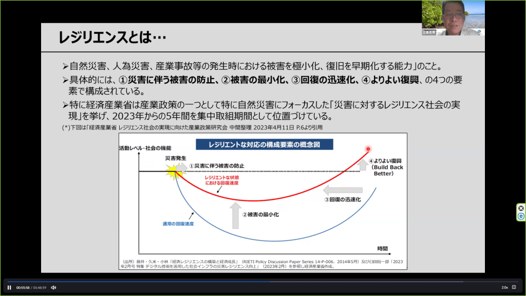 昨今の気候変動の影響による災害リスクや、企業への影響、わが国における災害レジリエンスにおける取り組みについてお話いただきました。